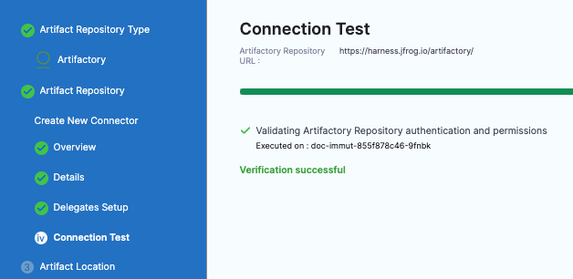 7. Select Continue to connect with Artifactory by using a Harness Delegate.