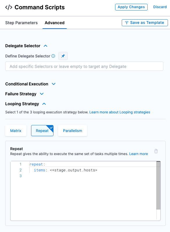 The looping strategy is automatically added to the Deploy step and configured for the deployment type you selected: