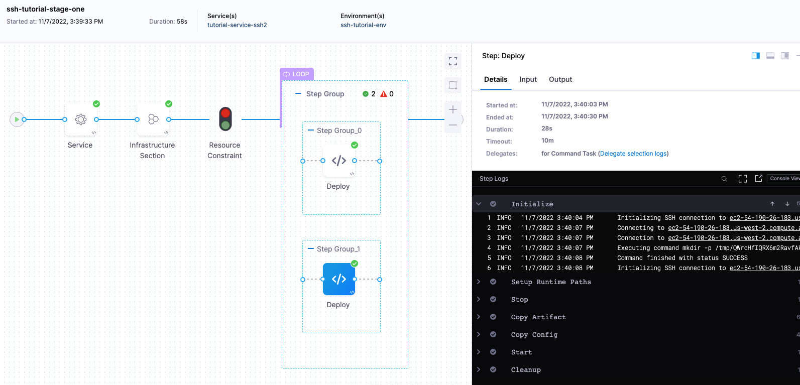 • If the pipeline terminates due to expire/abort/failure cases, but the host was successfully deployed via a command step before termination, the deployment on that host is still considered successful.