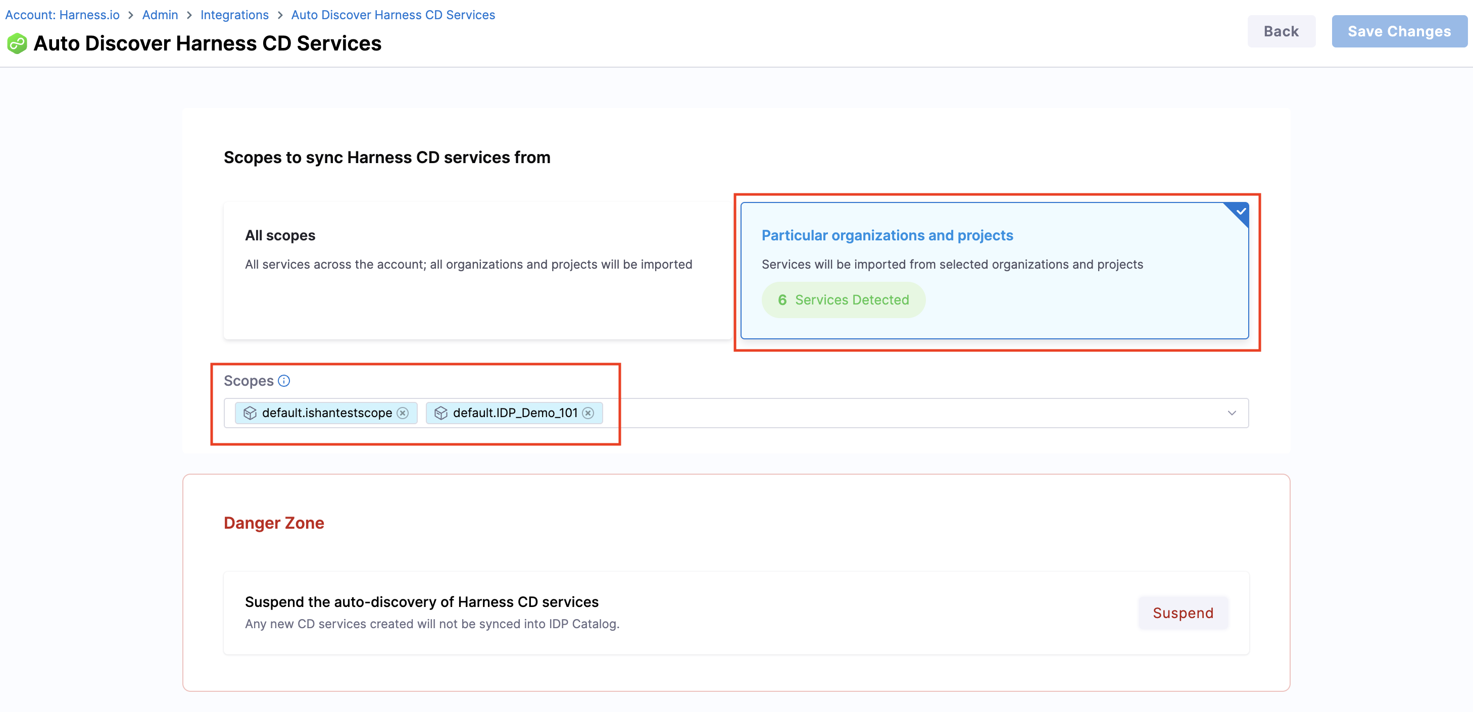 • RBAC: You can view and sync services from the same projects and organizations you have access to in Harness CD.