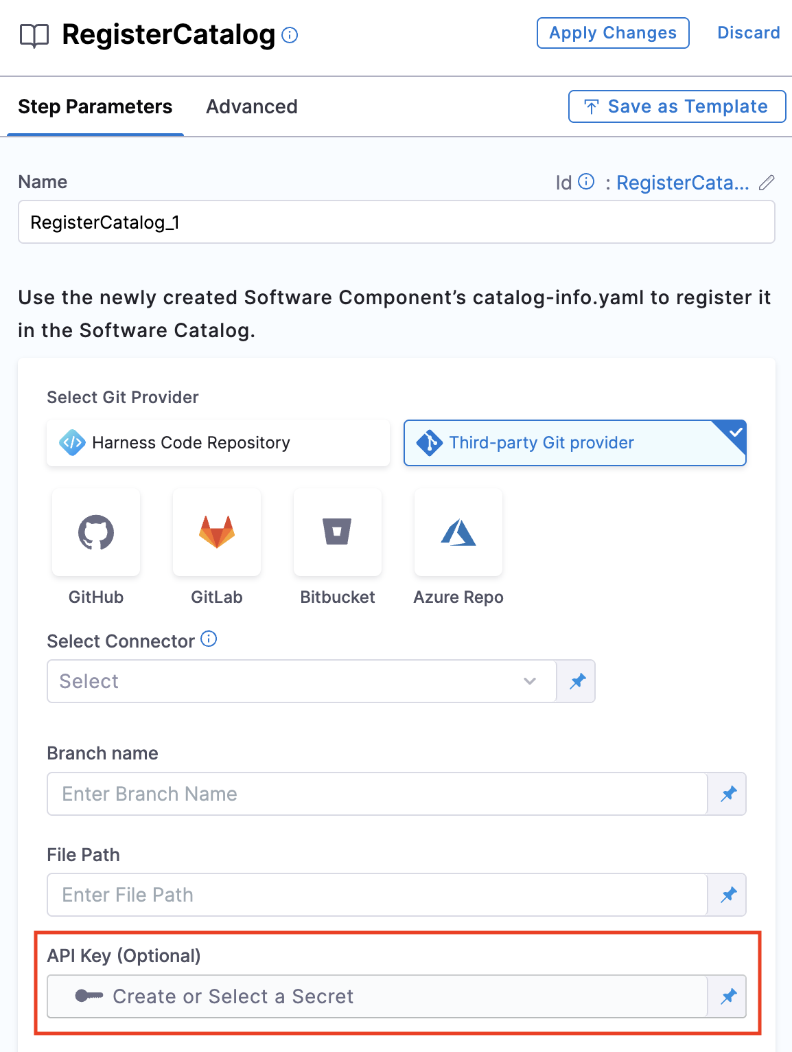 4. registerCatalog: Used to register the software component created in the Harness IDP Catalog.