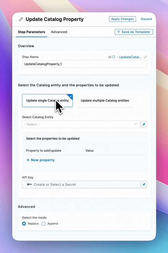 7. updateCatalogProperty: Used to update the catalog metadata for your entities
