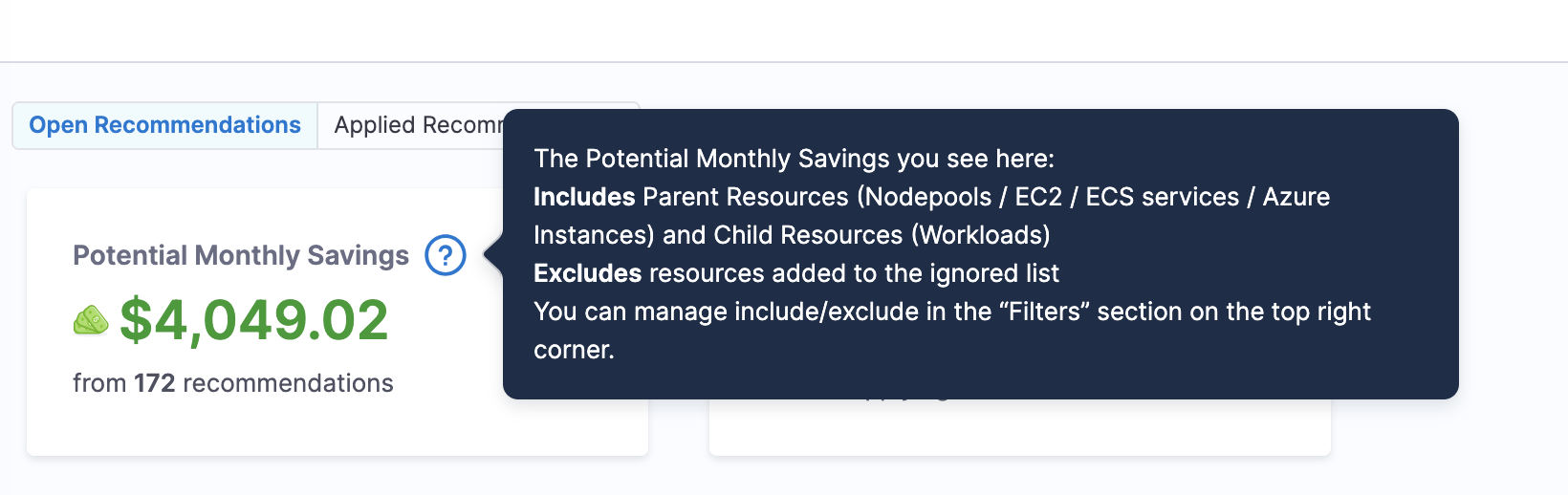 • Overridden Savings: Savings amount that has been manually adjusted for applied recommendations
