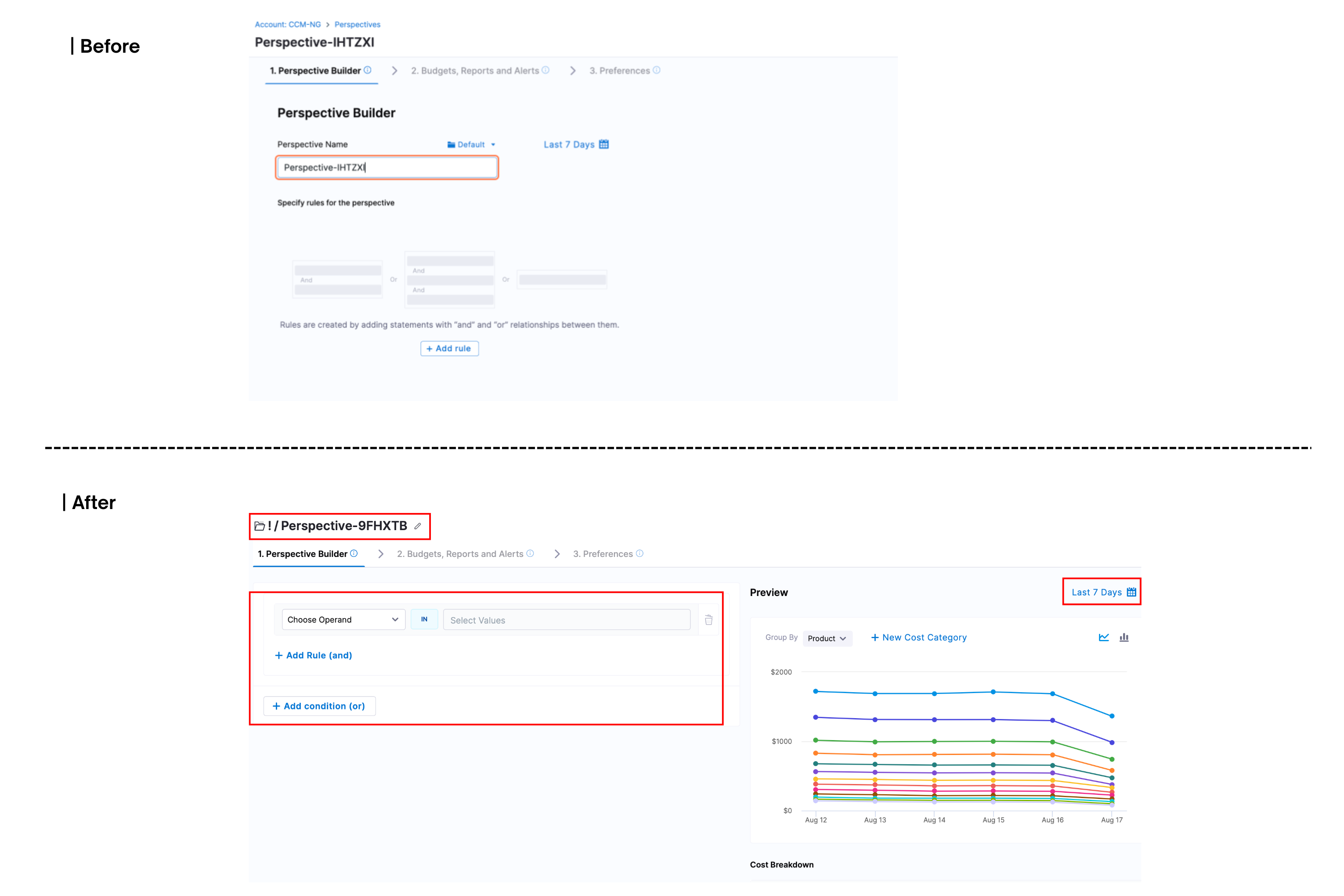 • Resource ID Support in Perspectives: Added "Resource ID" as a group by, filter, and operand across all cloud service providers, enabling more granular cost analysis and reporting. Resource ID - AWS Global Resource Name - GCP
