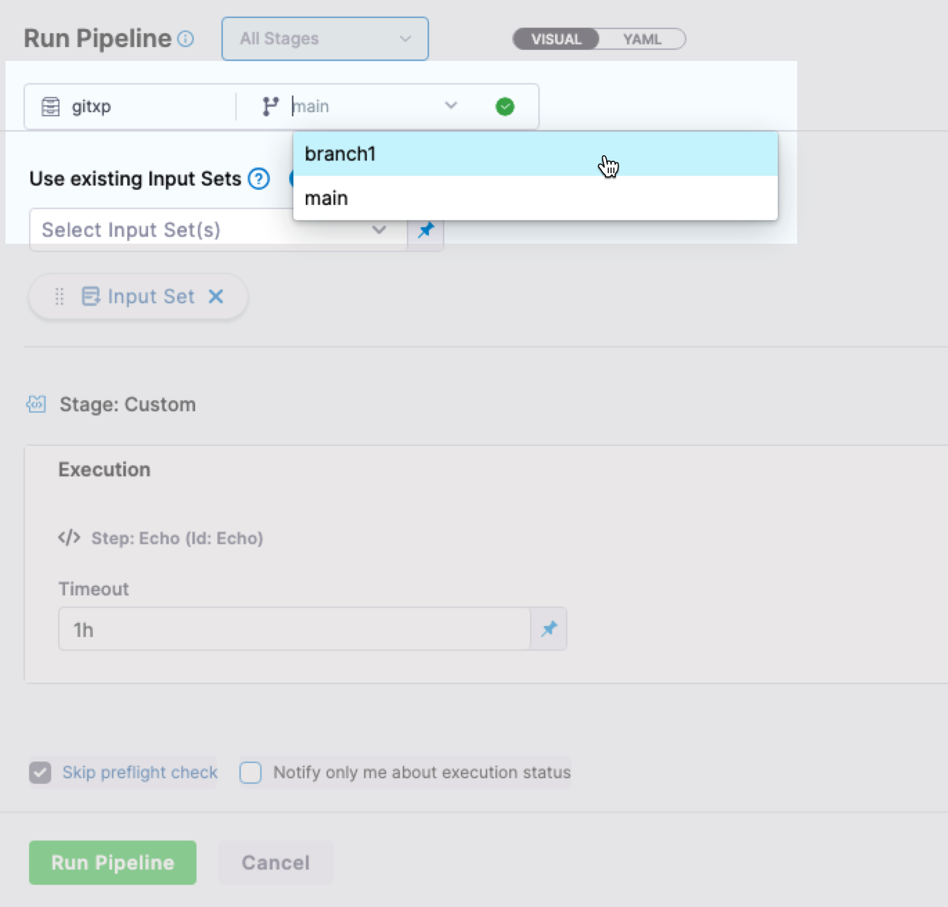 • Fixed an issue where the UI incorrectly sent a random branch in the query parameters for execute or retry APIs even though the pipeline was configured as inline. Pipeline execution and retry operations now correctly handle inline pipelines without branch parameters. (PIPE-29656, ZD-90918)